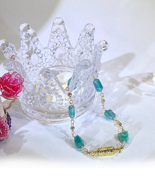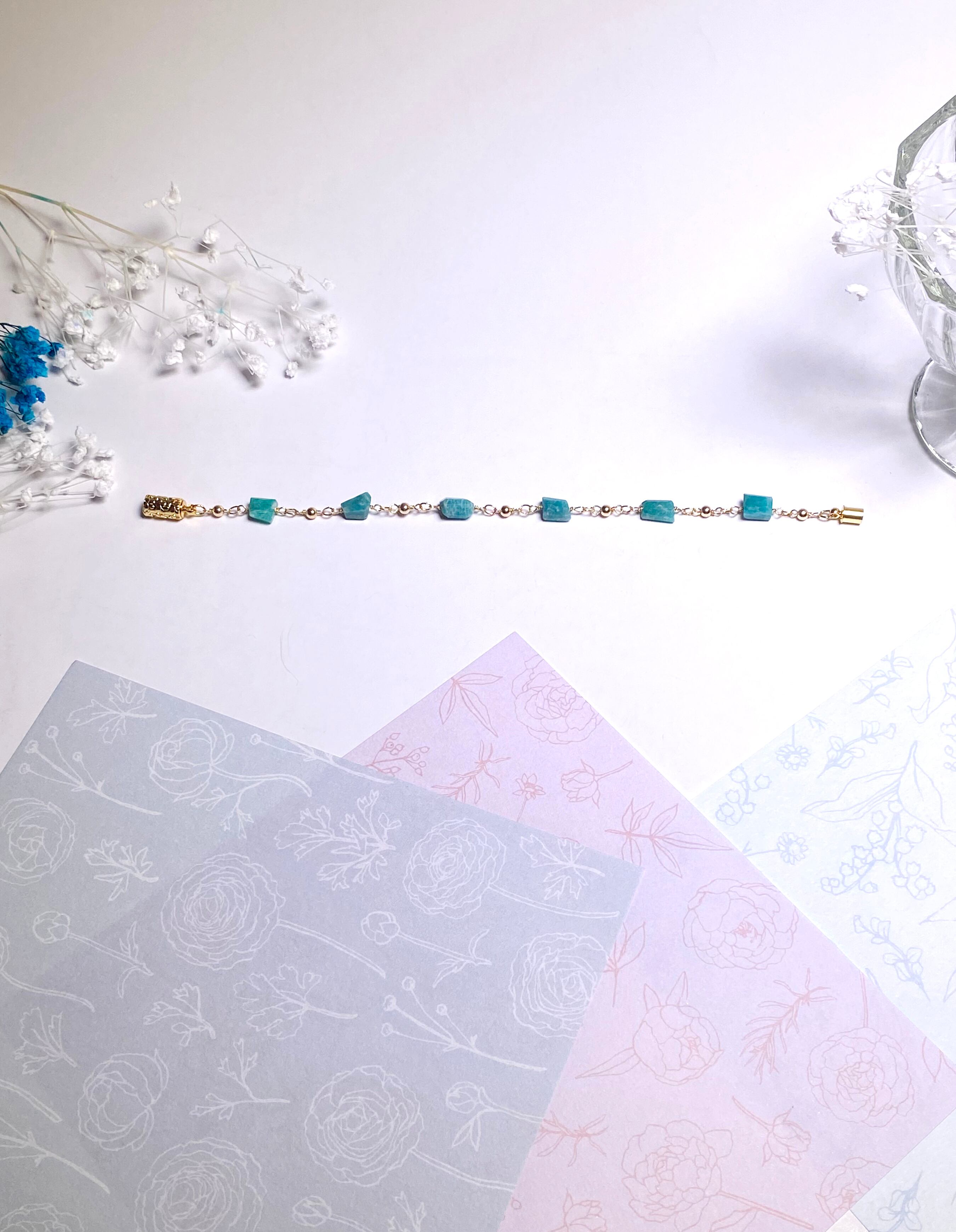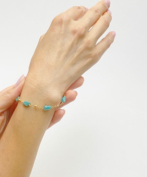 原石の模様が入ったグリーンのアマゾナイトのブレスレットです