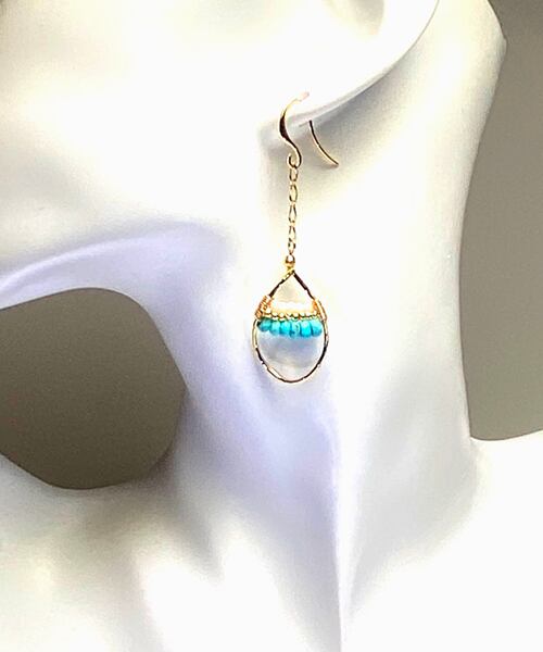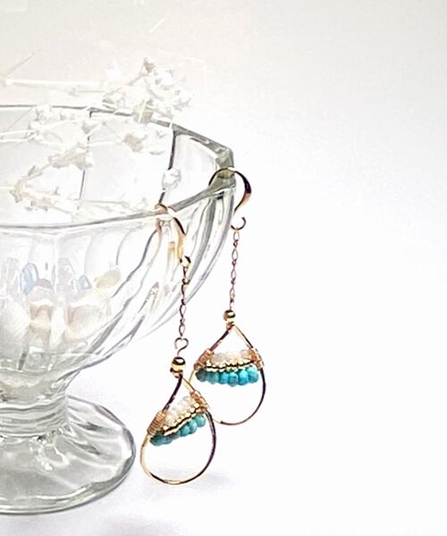 ブルーグリーンの母岩が入ったキングマンターコイズと小さなホワイトコーラルが夏を彩る定番アイテムです。
