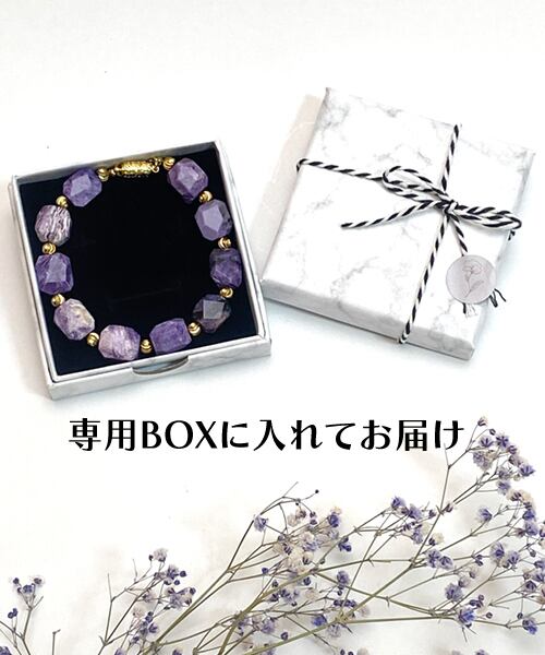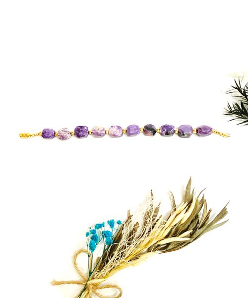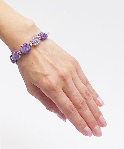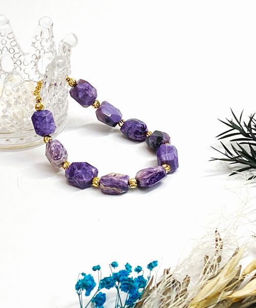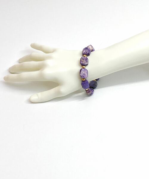 希少石「チャロアイト」の中でも珍しい大粒タンブルカットのブレスレットです。上品さと力強さを感じさせるお品です。