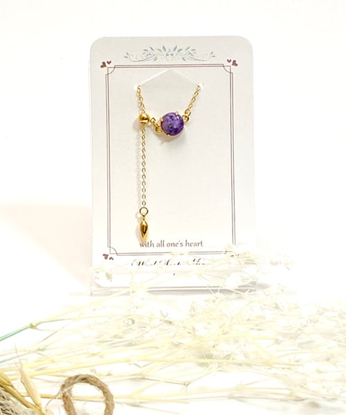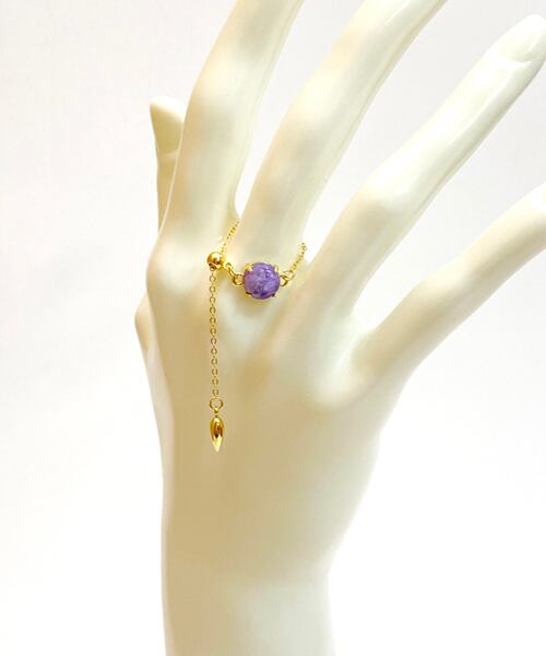 魅惑の石チャロアイトは一度目にしたら忘れられない魅力があります。指元に飾ってその魅力をお楽しみください。石言葉は癒し・浄化・克服。