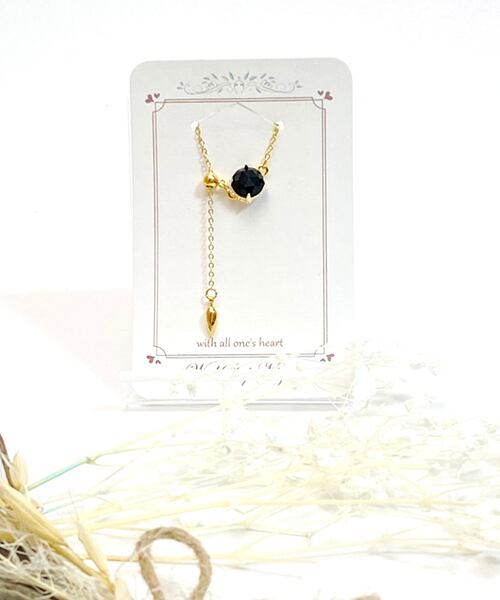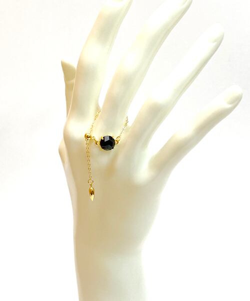 ローズカットがより美しい黒を引き立てる、オニキスチェーンリングです。石言葉は成功・厄除け。
