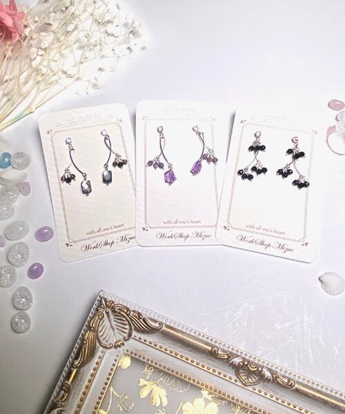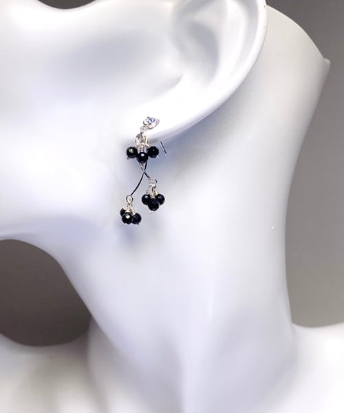 3㎜のラウンドカットのオニキスが輝く、シャンデリア風ピアスに仕上げました。